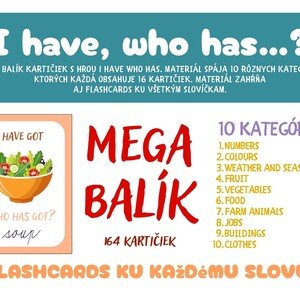Didaktická hra „I have, who has?“ je vhodná pre žiakov 1. – 3. ročníka ZŠ. Hravou formou si žiaci precvičia slovnú