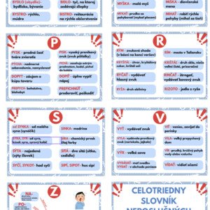 Súbor VYBRANÉ SLOVÁ - SLOVNÍK NEPOSLUŠNÝCH SLOV je výborná pomôcka pri vyvodení aj upevňovaní učiva. Vhodné vytlačiť vo