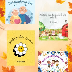 Súbor obsahuje plagáty na významné dni v mesiaci október: deň cestovín, deň stromov, deň starých rodičov, deň úsmevu